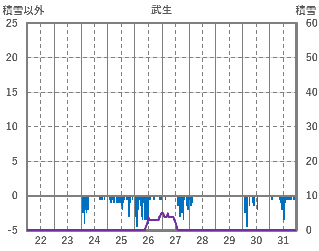 | 日 | 時 | 気温 | 降水 | 風向/風速 | 日照 | 積雪 | 降雪 |