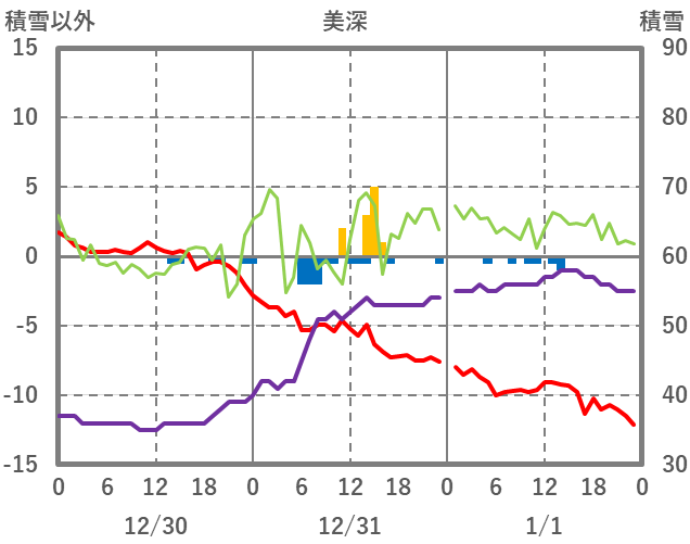 | 日 | 時 | 気温 | 降水 | 風向/風速 | 日照 | 積雪 | 降雪 |