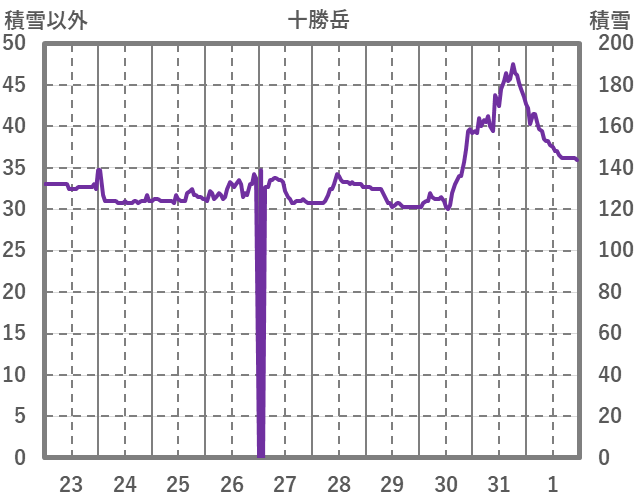 | 日 | 時 | 気温 | 降水 | 風向/風速 | 日照 | 積雪 | 降雪 |