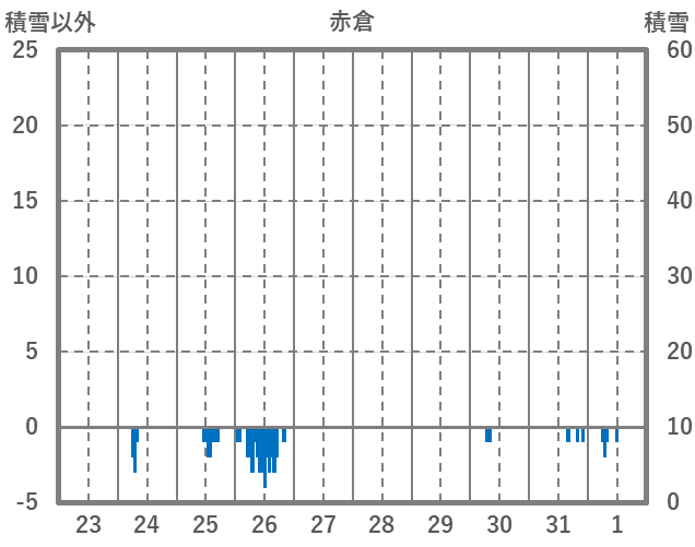 | 日 | 時 | 気温 | 降水 | 風向/風速 | 日照 | 積雪 | 降雪 |
