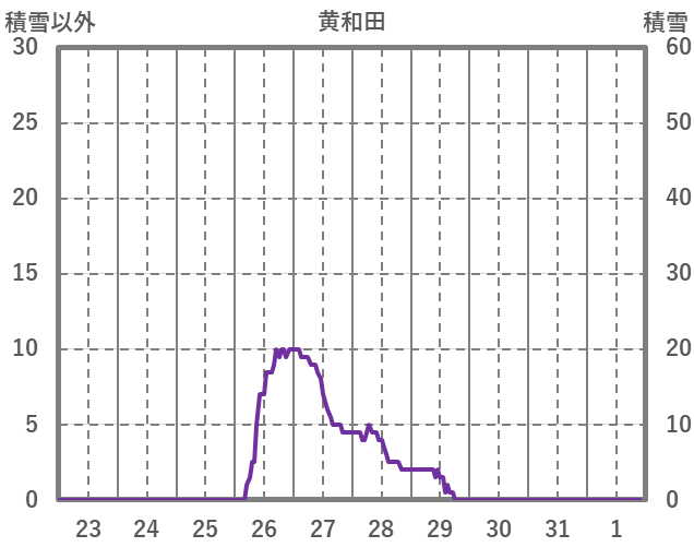 | 日 | 時 | 気温 | 降水 | 風向/風速 | 日照 | 積雪 | 降雪 |