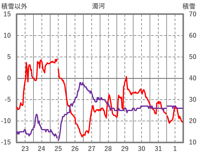 | 日 | 時 | 気温 | 降水 | 風向/風速 | 日照 | 積雪 | 降雪 |