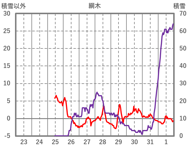 | 日 | 時 | 気温 | 降水 | 風向/風速 | 日照 | 積雪 | 降雪 |