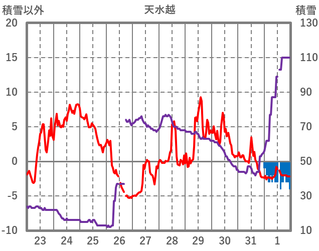 | 日 | 時 | 気温 | 降水 | 風向/風速 | 日照 | 積雪 | 降雪 |