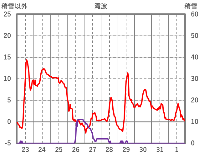 | 日 | 時 | 気温 | 降水 | 風向/風速 | 日照 | 積雪 | 降雪 |