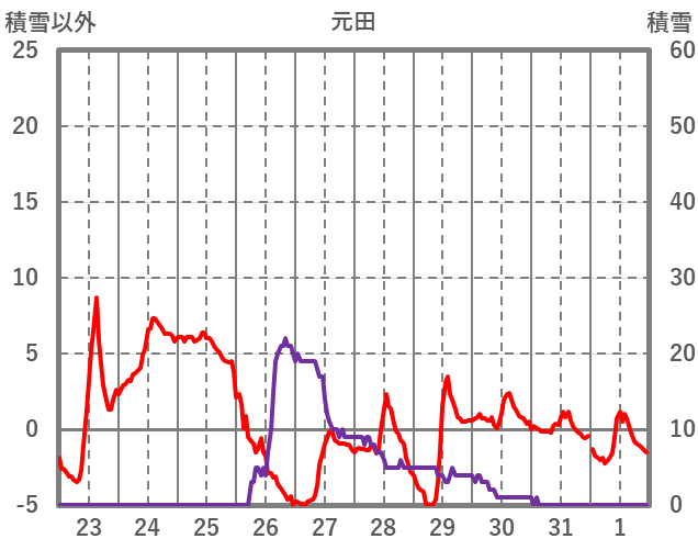 | 日 | 時 | 気温 | 降水 | 風向/風速 | 日照 | 積雪 | 降雪 |