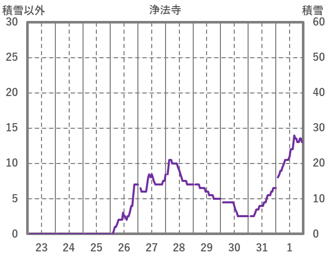 | 日 | 時 | 気温 | 降水 | 風向/風速 | 日照 | 積雪 | 降雪 |
