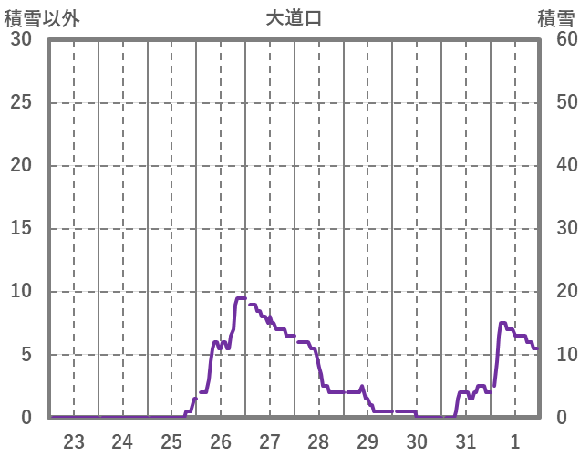 | 日 | 時 | 気温 | 降水 | 風向/風速 | 日照 | 積雪 | 降雪 |