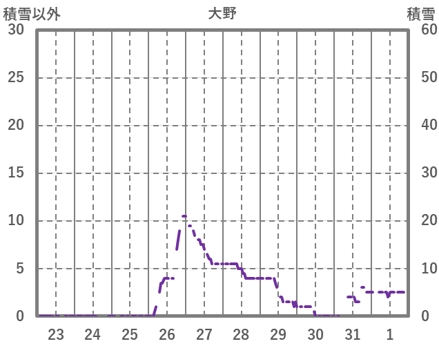 | 日 | 時 | 気温 | 降水 | 風向/風速 | 日照 | 積雪 | 降雪 |