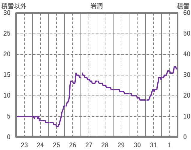 | 日 | 時 | 気温 | 降水 | 風向/風速 | 日照 | 積雪 | 降雪 |