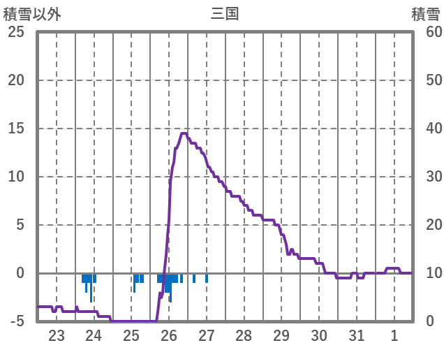 | 日 | 時 | 気温 | 降水 | 風向/風速 | 日照 | 積雪 | 降雪 |
