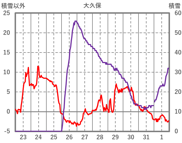 | 日 | 時 | 気温 | 降水 | 風向/風速 | 日照 | 積雪 | 降雪 |
