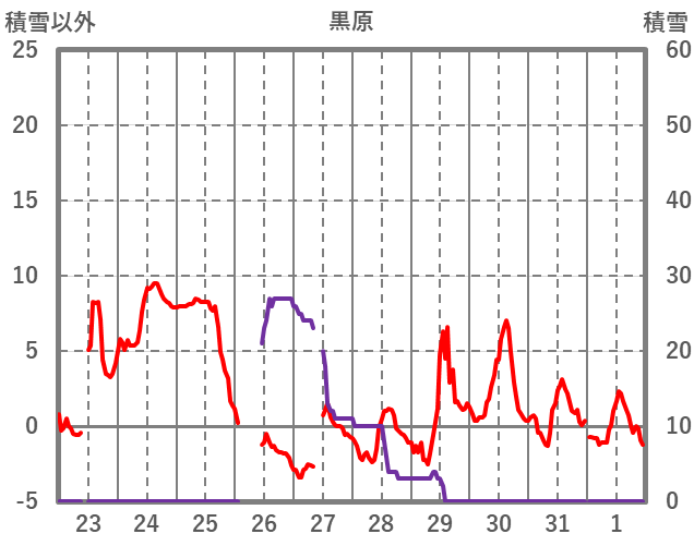 | 日 | 時 | 気温 | 降水 | 風向/風速 | 日照 | 積雪 | 降雪 |