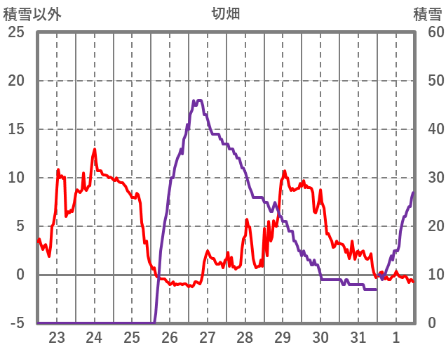 | 日 | 時 | 気温 | 降水 | 風向/風速 | 日照 | 積雪 | 降雪 |