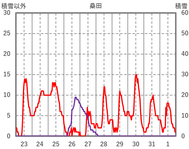 | 日 | 時 | 気温 | 降水 | 風向/風速 | 日照 | 積雪 | 降雪 |