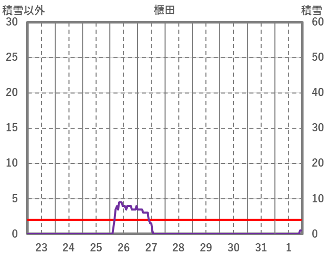 | 日 | 時 | 気温 | 降水 | 風向/風速 | 日照 | 積雪 | 降雪 |