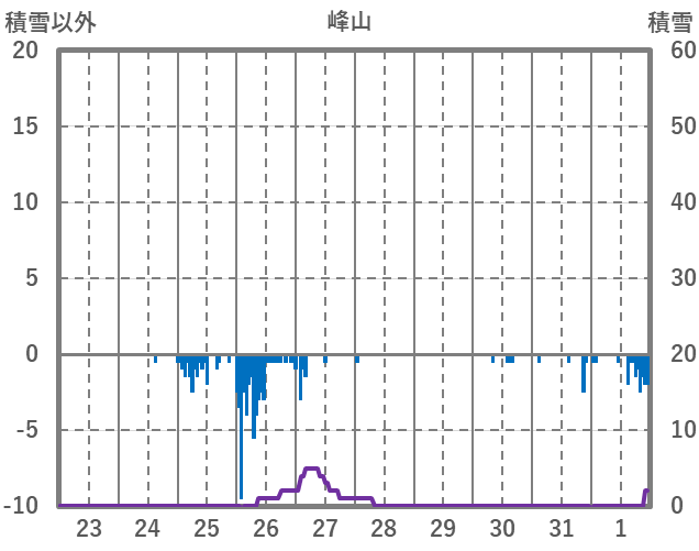 | 日 | 時 | 気温 | 降水 | 風向/風速 | 日照 | 積雪 | 降雪 |