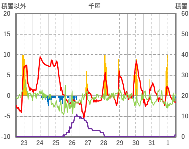| 日 | 時 | 気温 | 降水 | 風向/風速 | 日照 | 積雪 | 降雪 |