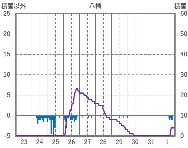 | 日 | 時 | 気温 | 降水 | 風向/風速 | 日照 | 積雪 | 降雪 |