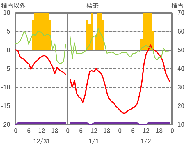 | 日 | 時 | 気温 | 降水 | 風向/風速 | 日照 | 積雪 | 降雪 |
