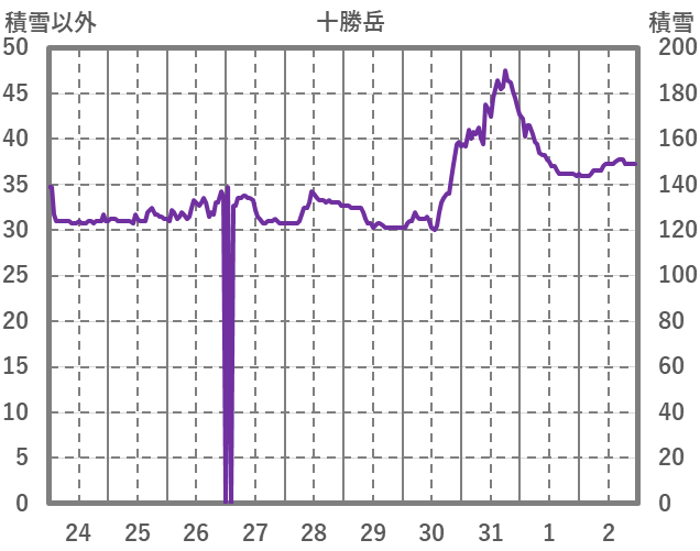 | 日 | 時 | 気温 | 降水 | 風向/風速 | 日照 | 積雪 | 降雪 |