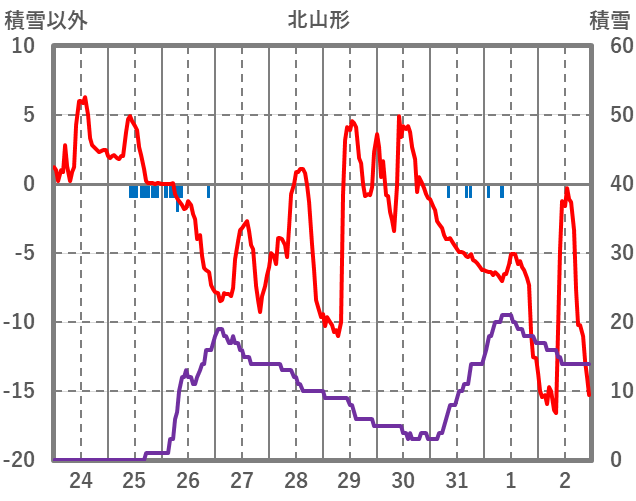 | 日 | 時 | 気温 | 降水 | 風向/風速 | 日照 | 積雪 | 降雪 |