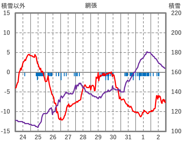 | 日 | 時 | 気温 | 降水 | 風向/風速 | 日照 | 積雪 | 降雪 |