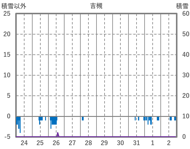 | 日 | 時 | 気温 | 降水 | 風向/風速 | 日照 | 積雪 | 降雪 |
