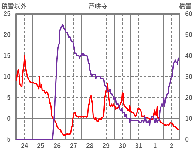 | 日 | 時 | 気温 | 降水 | 風向/風速 | 日照 | 積雪 | 降雪 |