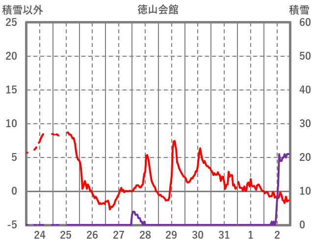 | 日 | 時 | 気温 | 降水 | 風向/風速 | 日照 | 積雪 | 降雪 |