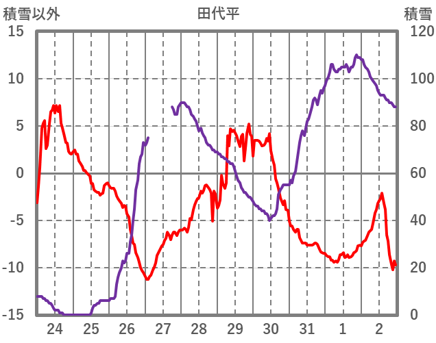 | 日 | 時 | 気温 | 降水 | 風向/風速 | 日照 | 積雪 | 降雪 |
