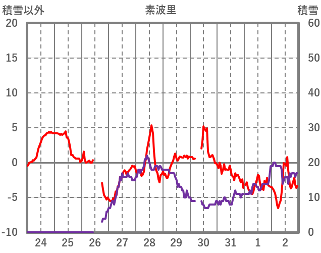 | 日 | 時 | 気温 | 降水 | 風向/風速 | 日照 | 積雪 | 降雪 |