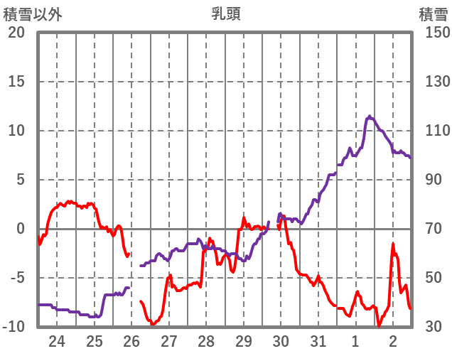 | 日 | 時 | 気温 | 降水 | 風向/風速 | 日照 | 積雪 | 降雪 |