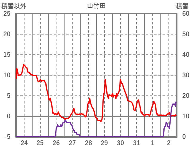 | 日 | 時 | 気温 | 降水 | 風向/風速 | 日照 | 積雪 | 降雪 |