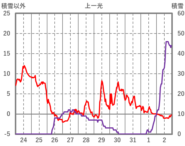 | 日 | 時 | 気温 | 降水 | 風向/風速 | 日照 | 積雪 | 降雪 |