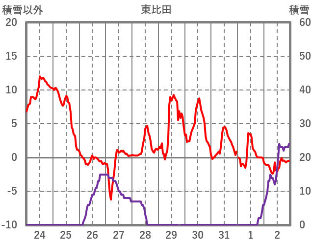 | 日 | 時 | 気温 | 降水 | 風向/風速 | 日照 | 積雪 | 降雪 |