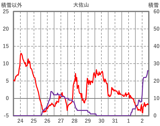 | 日 | 時 | 気温 | 降水 | 風向/風速 | 日照 | 積雪 | 降雪 |