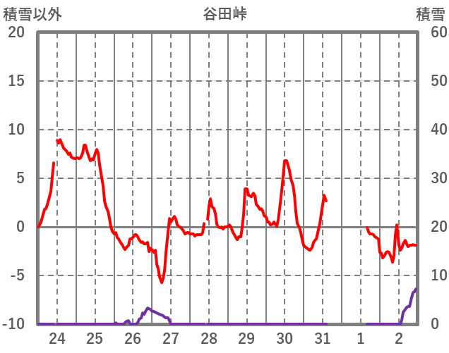 | 日 | 時 | 気温 | 降水 | 風向/風速 | 日照 | 積雪 | 降雪 |