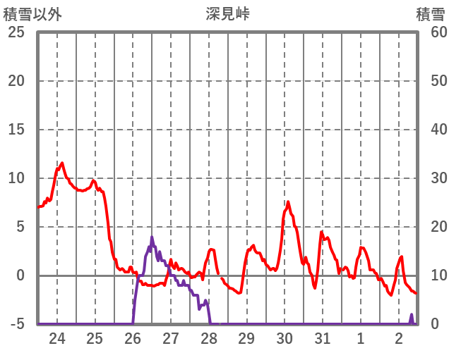| 日 | 時 | 気温 | 降水 | 風向/風速 | 日照 | 積雪 | 降雪 |