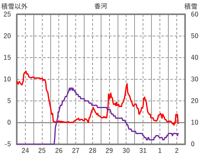 | 日 | 時 | 気温 | 降水 | 風向/風速 | 日照 | 積雪 | 降雪 |