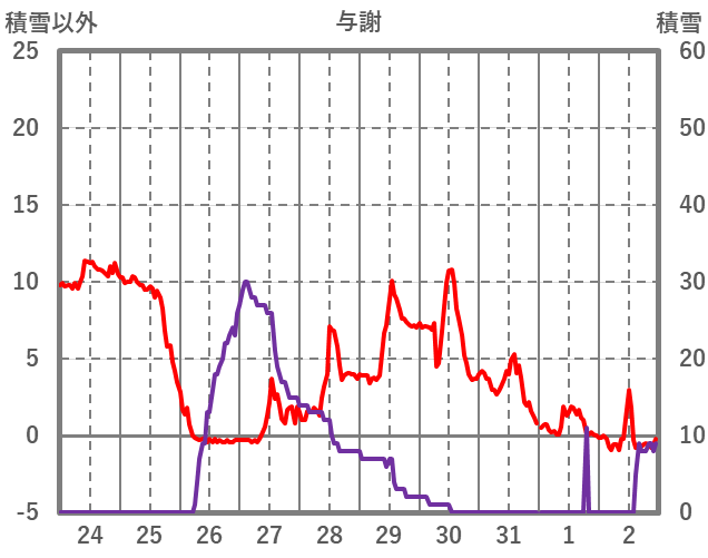 | 日 | 時 | 気温 | 降水 | 風向/風速 | 日照 | 積雪 | 降雪 |