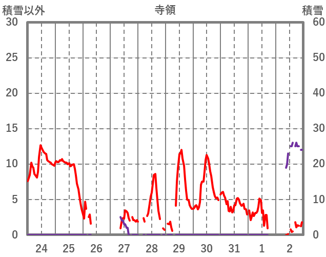 | 日 | 時 | 気温 | 降水 | 風向/風速 | 日照 | 積雪 | 降雪 |