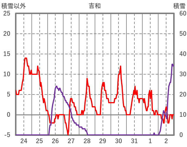 | 日 | 時 | 気温 | 降水 | 風向/風速 | 日照 | 積雪 | 降雪 |