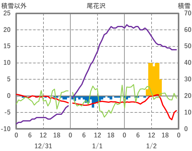 | 日 | 時 | 気温 | 降水 | 風向/風速 | 日照 | 積雪 | 降雪 |