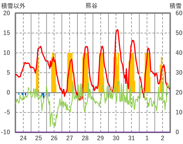 | 日 | 時 | 気温 | 降水 | 風向/風速 | 日照 | 積雪 | 降雪 |