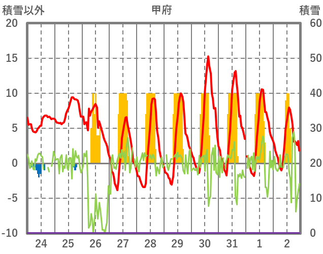 | 日 | 時 | 気温 | 降水 | 風向/風速 | 日照 | 積雪 | 降雪 |