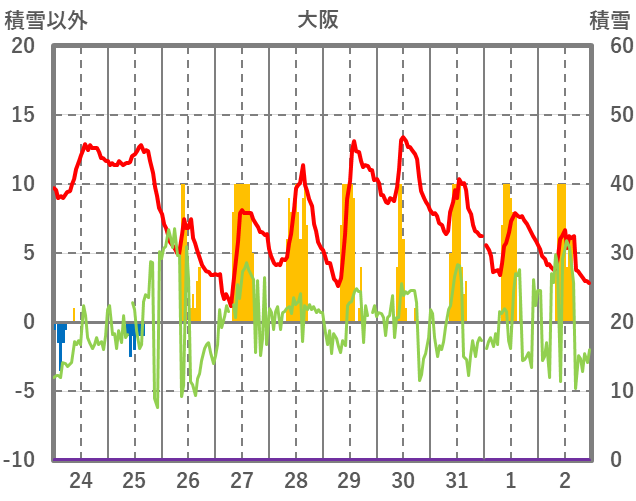 | 日 | 時 | 気温 | 降水 | 風向/風速 | 日照 | 積雪 | 降雪 |
