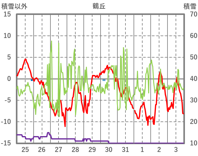| 日 | 時 | 気温 | 降水 | 風向/風速 | 日照 | 積雪 | 降雪 |