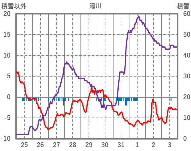 | 日 | 時 | 気温 | 降水 | 風向/風速 | 日照 | 積雪 | 降雪 |