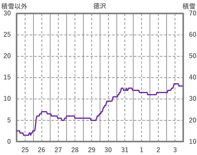 | 日 | 時 | 気温 | 降水 | 風向/風速 | 日照 | 積雪 | 降雪 |